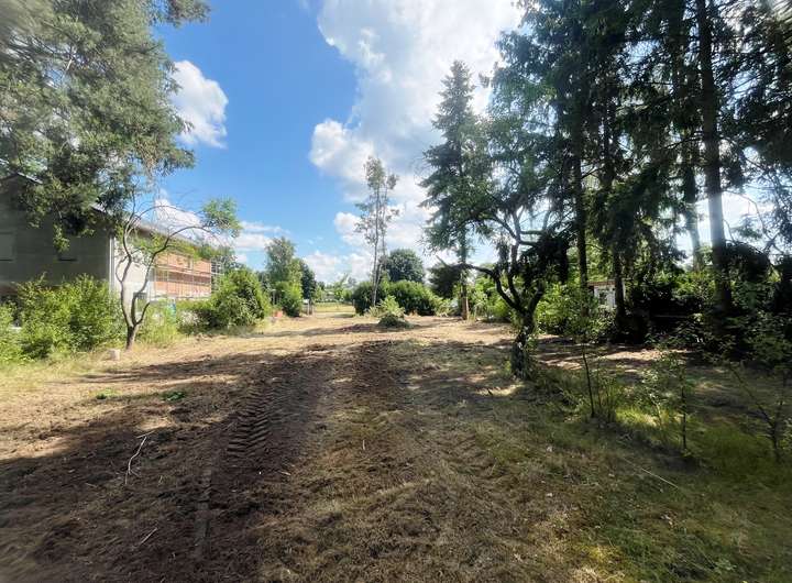Das Grundstück wurde jüngst vom groben Bewuchs befreit und maschinell abgezogen.