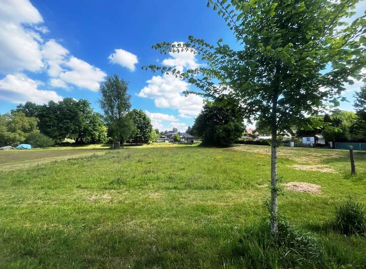 Das gut geschnittene Wohnbauland mit ca. 1.252 m² besitzt eine Tiefe von ca. 56 m und eine Breite von ca. 22 m. Im hinteren seitlichen Bereich stehen mehrere große Bäume, vorn herrschen aktuell Gras- und Strauchbewuchs und nur einzelner Baumwuchs. Damit ist die mögliche Baulinie (siehe Nachbarbebauung) bereits sehr frei. Die Versorgungsleitungen- und Medien liegen straßenseitig an, Strom ist bereits auf dem Areal. Auf der anderen Straßenseite erstreckt sich der nicht verbaute Dorfanger (Wiesenareal), der u.a. als Sickerfläche dient, so dass der Blick vom Grundstück nicht auf eine andere Bebauung geht. Eine Baugenehmigung bzw. Bauvoranfrage ist nicht gestellt und liegt aktuell nicht vor. Verwirklichen Sie hier Ihren eigenen Wohntraum im Grünen!
