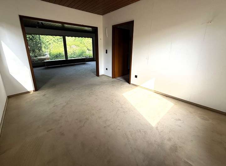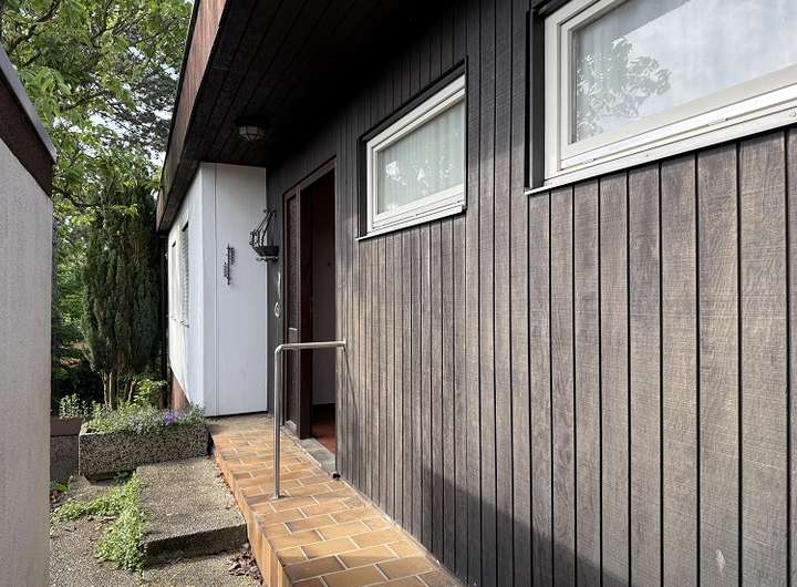 Der in Hanglage in den 70er Jahren errichtete Bungalow (Fertighaus mit gemauertem Keller) bietet folgende Räumlichkeiten: