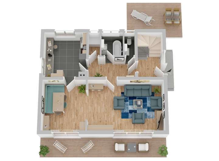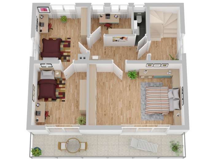 Nachdem Sie das Haus betreten, steht Ihnen im Erdgeschoss ein großzügiges Wohn-/ Esszimmer mit Zugang zur Terrasse und Garten, eine Küche mit angrenzendem Esszimmer sowie ein Tageslichtbadezimmer mit Badewanne und ein WC zur Verfügung. Im Obergeschoss finden Sie 2 Kinderzimmer, Elternschlafzimmer, ein weiteres Zimmer zur individuellen Nutzung sowie ein WC. Im Dachgeschoss stehen Ihnen weitere Flächen zur Verfügung. Somit wäre auch eine Nutzung mit 2 Wohnungen denkbar.