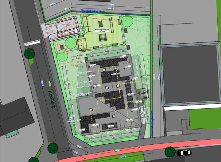 Das genehmigte Bauvorhaben umfasst ca. 1.556 m² BGF inkl. Tiefgarage, verteilt auf zwei Vollgeschosse und ein Dachgeschoss. Eine hochwertige architektonische Ausführung mit Klinkerfassaden, barrierefreier Erschließung über einen Aufzug sowie großzügige Außenflächen – einschließlich begrüntem Tiefgaragendach – schaffen ideale Voraussetzungen für eine erfolgreiche Vermarktung oder langfristige Bestandshaltung.