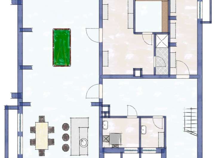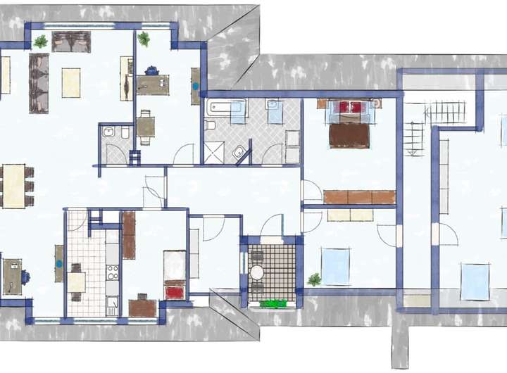 • eine ca. 133 m² große Erdgeschosswohnung, die sich aktuell in einem renovierungsbedürftigen Zustand befindet und Gestaltungsspielraum für individuelle Wünsche bietet,