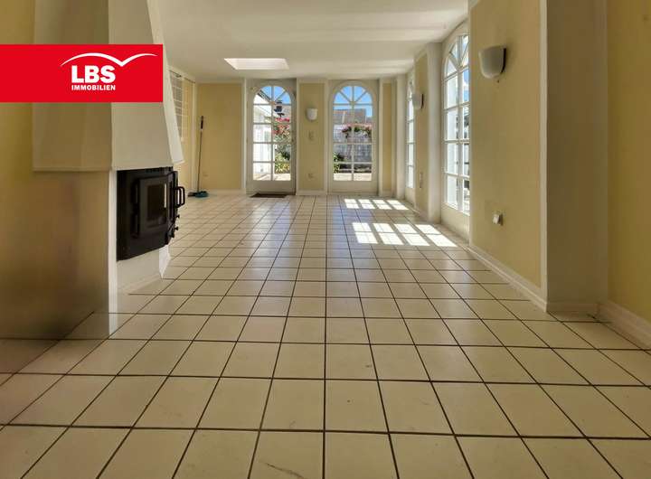 Ein echtes Highlight ist der wintergartenähnliche Anbau mit seinen eleganten Rundbogenfenstern, dem wunderbaren Blick ins Grüne und einem Kaminofen, der für gemütliche Wärme sorgt. Angrenzend befindet sich ein ruhiger Arbeitsbereich – ideal fürs Homeoffice oder als Rückzugsort zum Lesen, Denken oder Entspannen, oder einfach auch als Abstellraum.