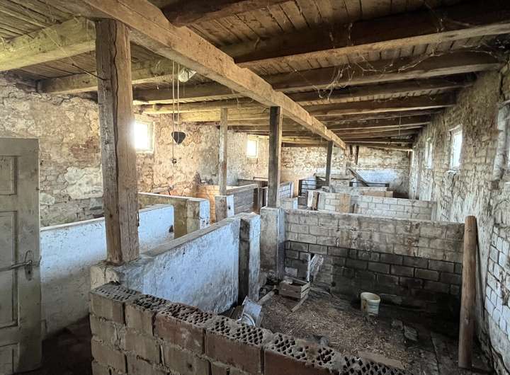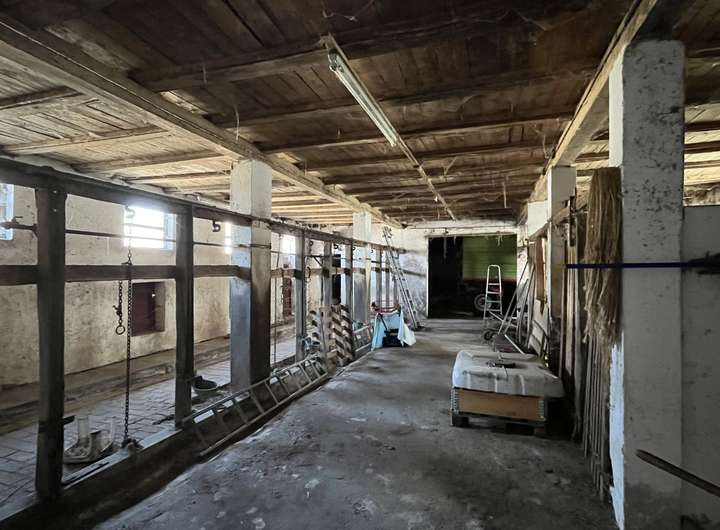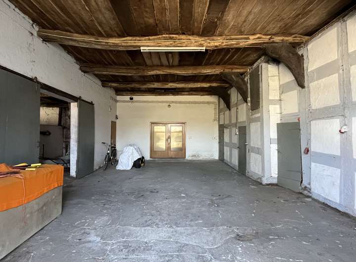 Die großzügige Diele, der ehemalige Kuhstall (Anbau), der ehemalige Schweinestall (Ursprungsbau), die große Scheune und die Remise mit Garagen umfassen eine gesamte Nutzfläche von ca. 465 m². Reichlich Platz für all Ihre Ideen. Von der Diele aus gelangen Sie in die jeweiligen Stallungen und auf den Heuboden. Der Heuboden bietet auch noch reichlich Platz ist jedoch auf Grund der Sanierungsbedürftigkeit nicht komplett begehbar. Die Stallungen müssen ebenfalls aus dem Dornröschenschlaf erweckt werden.
