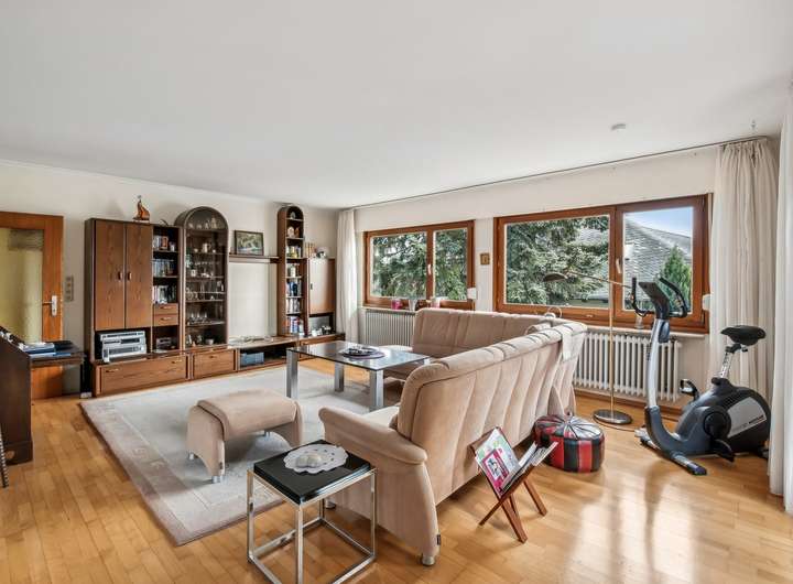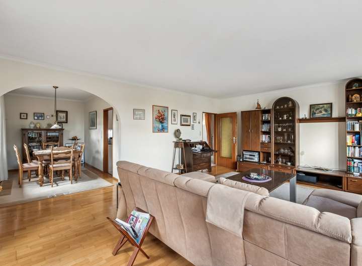 Das im Jahr 1972 errichtete Haus verfügt über eine Wohnfläche von ca. 112 m². Zusätzlich stehen Ihnen rund 35 m² wohnlich ausgebaute Nutzfläche im Garten-/Kellergeschoss zur Verfügung. Diese bestehen aus zwei vielseitig nutzbaren Räumen sowie einem Duschbad samt Toilette – ideal als Homeoffice, Gäste- oder Hobbybereich.