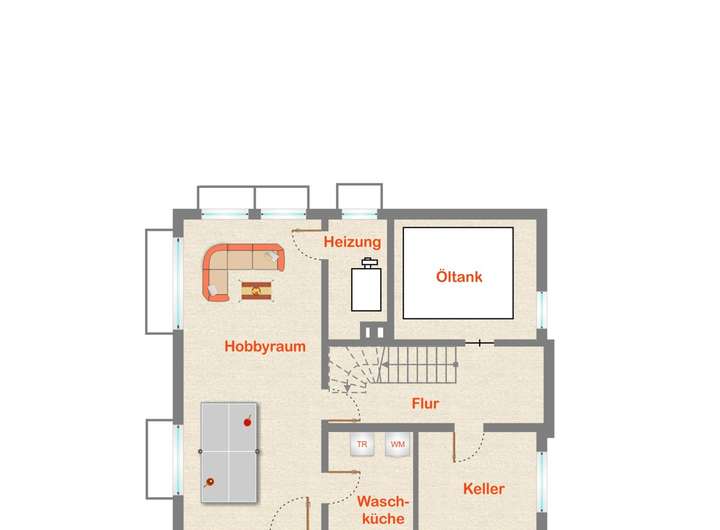 - großer Hobbyraum mit Aussentreppe in den Garten