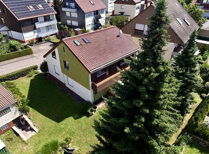 Das Einfamilienhaus befindet sich in ruhiger Lage in Filderstadt im Stadtteil Harthausen und bietet eine ideale Wohnlage für Familien. Die hervorragende Anbindung an das öffentliche Verkehrsnetz, mit einer Bushaltestelle nur ca. 240 Meter entfernt, macht den Alltag besonders angenehm. Für junge Familien ist die Nähe zu Bildungseinrichtungen ein großer Vorteil: Der Kindergarten ist nur knapp 200 Meter entfernt, die Grundschule etwas über 200 Meter. Ältere Kinder profitieren von den nahegelegenen weiterführenden Schulen; das nächstgelegene Gymnasium befindet sich im Stadtteil Bernhausen und ist bequem mit öffentlichen Verkehrsmitteln erreichbar.