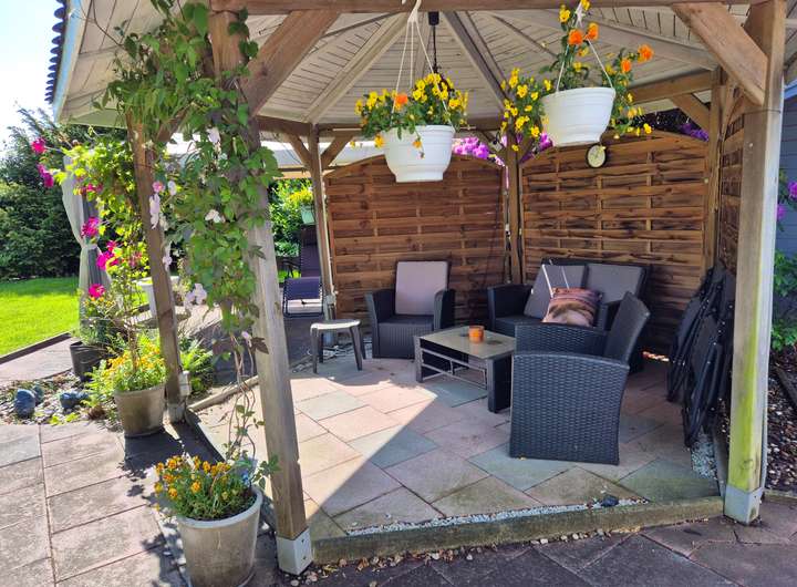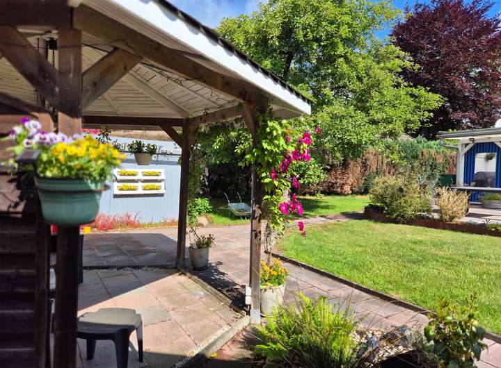 Wohnen in ländlicher Lage und doch zentral im Ortskern auf einem liebevoll angelegten Gartenbereich mit ca. 1.217 m² Grundstück. Umgeben von Büschen und Beeten, einem Springbrunnen, Pavillon, Holzlager und einer Gartenlaube genie-ßen Sie idyllischer Wohnambiente in ihrer Freizeit. In Kürze erreichen Sie den Barßeler Hafen mit dem Leuchtturm und die Fahrradroute am Deich entlang.