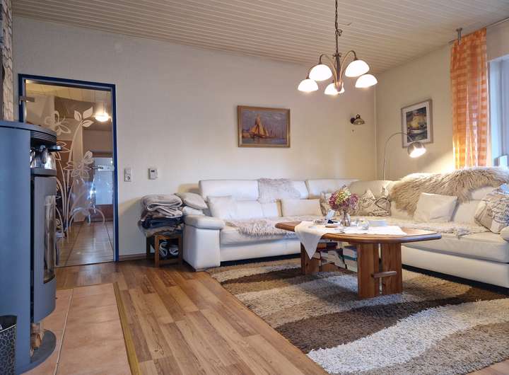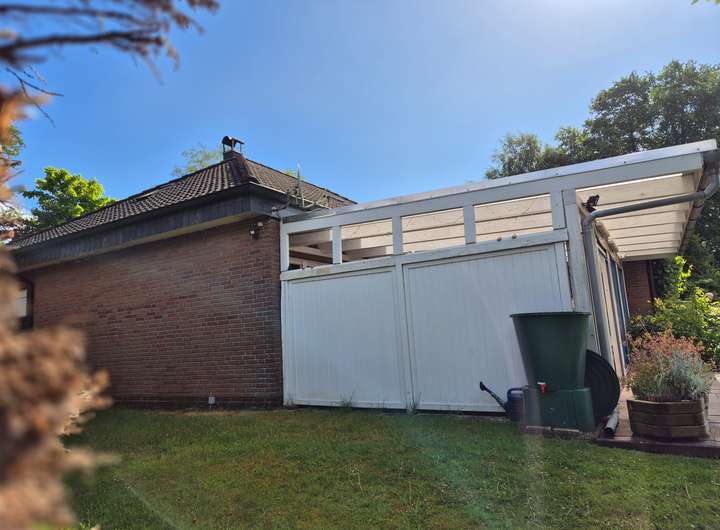 Der modernisierte Bungalow mit Garage und Carport aus dem Jahr 1972, überzeugt durch seine durchdachte Raumauftei-lung mit ca. 134 m² Wohnfläche. Er bietet viel Platz für die ganze Familie, die sich im gemütlichen Wohn- und Esszimmer am Kaminofen (Einbau 2023) trifft und gemeinsame Stunden genießt. Des Weiteren wird das Wohnhaus von einer Ölhei-zung beheizt. Die südlich ausgerichtete, geschlossene Terrasse wurde mit einem Windschutz erweitert. Dieser zusätzliche Wohnraum schafft eine besondere Atmosphäre das ganze Jahr über.