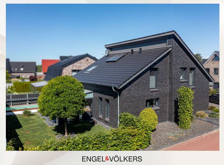 Dieses moderne Einfamilienhaus im KfW-55-Standard auf einem 550 m² großen Eigentumsgrundstück in Sackgassenlage bietet Ihnen exklusiven Wohnkomfort mit durchdachter Raumaufteilung und hochwertiger Ausstattung. Mit 192 m² Wohnfläche und insgesamt sechs Zimmern ist es perfekt für Familien oder Paare mit Platzbedarf. Der offene Wohn- und Kochbereich im Erdgeschoss wird durch den angrenzenden Wintergarten und den direkten Zugang zur Terrasse zu einem echten Mittelpunkt des Hauses. Große Fensterflächen sorgen für viel Tageslicht und eine angenehme Wohnatmosphäre. Ein zusätzliches Büro sowie ein Duschbad machen das Erdgeschoss besonders funktional. Im Obergeschoss erwarten Sie drei geräumige Schlafzimmer, eines davon mit Ankleide und der Möglichkeit, ein zusätzliches Bad zu integrieren. Ein weiteres Zimmer kann als Gästezimmer oder zusätzliche Ankleide genutzt werden – maximale Flexibilität für Ihre Wohnbedürfnisse. Das große Badezimmer auf dieser Etage bietet höchsten Komfort mit einer eleganten Walk-in-Dusche und einer Badewanne, die zum Entspannen einlädt. Die Ausstattung lässt keine Wünsche offen: Großformatige Fliesen, Fußbodenheizung und eine moderne Raffstore-Anlage für optimalen Sonnenschutz schaffen ein komfortables Wohnklima. Der Außenbereich ist ein echtes Highlight: Der sonnige Garten mit beheiztem Pool und Außendusche mit Warmwasser lädt zum Entspannen ein. Ein besonderes Ausstattungsmerkmal ist die großzügige Dachterrasse auf der Doppelgarage – ausgestattet mit einem Whirlpool für entspannte Stunden unter freiem Himmel. Die Garage bietet zudem direkten Zugang zum Hauswirtschaftsraum, sodass Sie Einkäufe bequem und trocken ins Haus bringen können. Dieses Haus vereint modernes Design, höchsten Wohnkomfort und durchdachte Details – ein perfektes Zuhause für alle, die das Besondere suchen!