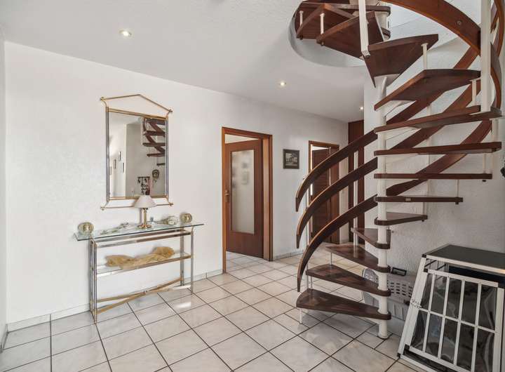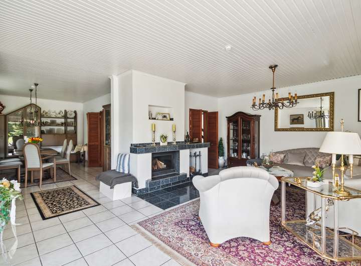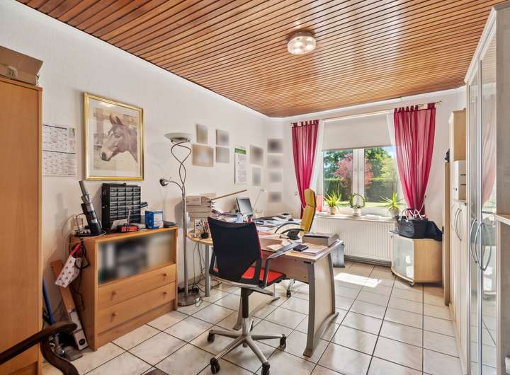 Das Erdgeschoss beeindruckt mit seiner durchdachten Raumaufteilung: Es verfügt über ein offenes Wohnzimmer als zentralen Treffpunkt, eine separate Küche und einen großzügigen Essbereich. Neben einem Büro befinden sich im Erdgeschoss weitere Räume, die auch als separate Einliegerwohnung genutzt werden können.