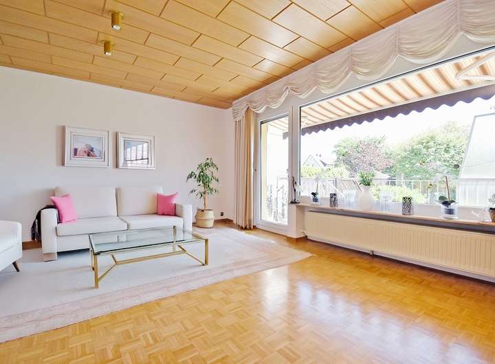 - Gut erhaltenes Stäbchenparkett im Wohnzimmer