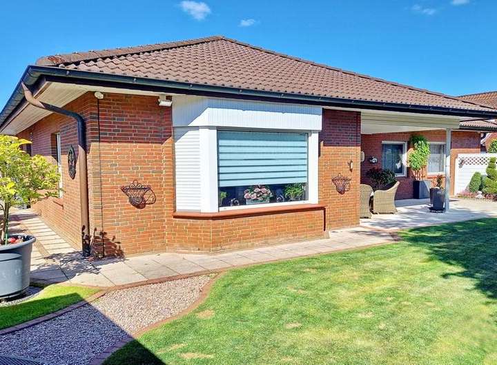 Dieser schöne Bungalow liegt am Ende einer ruhigen Sackgasse einer stadtnahen Wohnsiedlung in Kaltenkirchen. Er wird von einem gepflegten Garten umrahmt, der mit einigen Plätzen und einem Gartenhäuschen zum Verweilen einlädt. Auch ist dort die gemütliche überdachte Terrasse, die vom Esszimmer erreichbar ist. Der Hauseingang liegt geschützt an der Hausseite. Über eine großzügige Diele führt sie der Weg geradeaus ins Wohn-/ Esszimmer und rechts in die Küche. Neben der Küche befindet sich der Hauswirtschaftsraum. Direkt neben der Eingangstür befindet sich die Gäste-Toilette. Gehen Sie nach links, kommen Sie durch einen breiten Flur zu den anderen Räumen, die Sie nach Bedarf nutzen können. Momentan befinden sich dort das Schlafzimmer, das Büro und das Ankleidezimmer, welches als Fitnessraum genutzt wird. Außerdem das geräumige Bad mit Badewanne und Dusche. In diesem hinteren Bereich liegt ebenso der Durchgang zur Garage. Im Durchgang befinden sich die Gas-Heizung und die Stromzähler. In der Garage ist mit einer Tür eine kleine Werkstatt abgetrennt. Als Stauraum wird ebenfalls der Spitzboden genutzt, der einen neuen Boden bekommen hat. An den Doppelglas-Fenstern nach vorne befinden sich elektrische Außenjalousien. An den Fenstern nach hinten sind es mechanische Jalousien. Versäumen Sie nicht einen Besichtigungstermin zu vereinbaren. Er lohnt sich bestimmt!