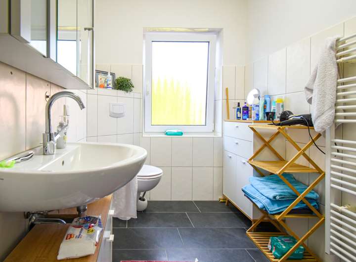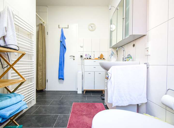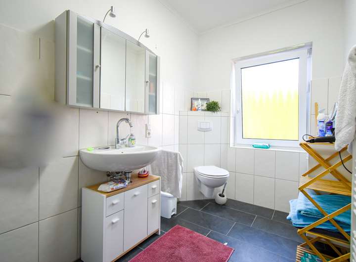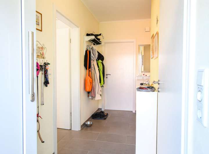 Der Boden ist mit hochwertigen Fliesen ausgestattet. Die Fußbodenheizung sowie die elektrischen Rollläden sorgen für ein angenehmes Wohnen.