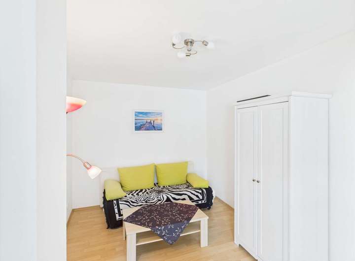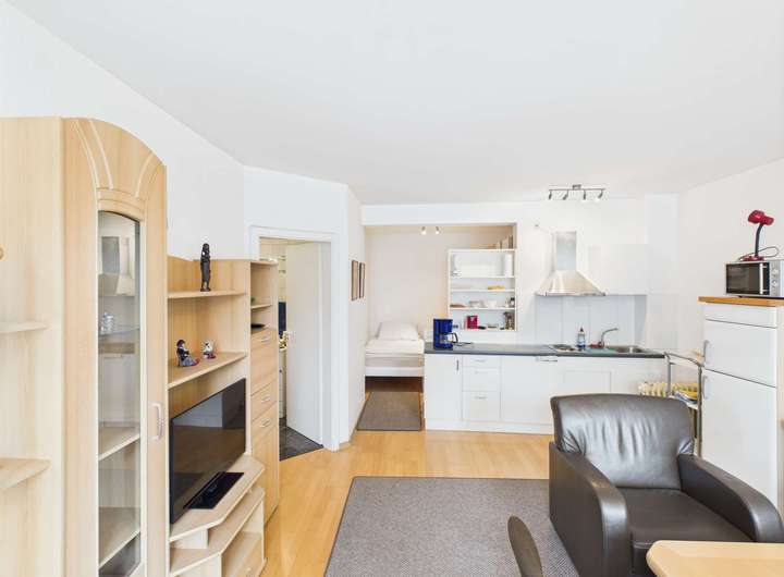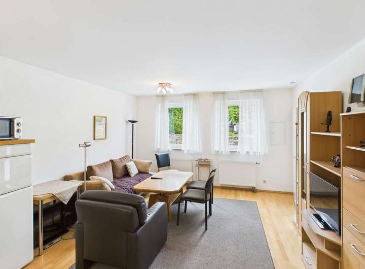 Im EG erwartet Sie ein helles Apartment mit 35,50 m² Wohnfläche, einer praktischen Küchenzeile, sowie ein Duschbad und ein abgetrennter Schlafbereich.