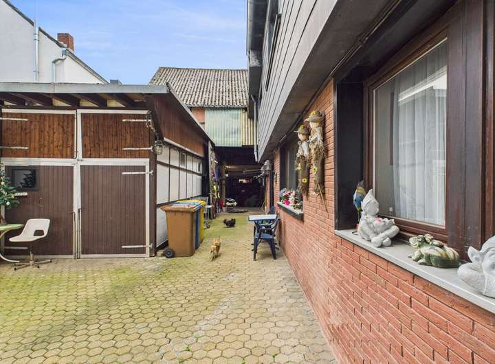 Auf dem Hof hinter dem Mehrfamilienhaus befindet sich ein weiteres separates Einfamilienhaus, welches 1970 in Massivbauweise errichtet wurde. Dieses renovierungsbedürftige Haus bietet Ihnen auf 90 m² Wohnfläche zusätzlich viel Platz mit 3 Zimmern, einer Küche, Diele und einem Badezimmer. Dieses im Hof liegende Gebäude eignet sich zum Beispiel für einen seniorengerechten Umbau oder zur Nutzung eines Mehrgenerationen - Models. Das Dach von diesem Haus wurde 2015 erneuert und gedämmt.