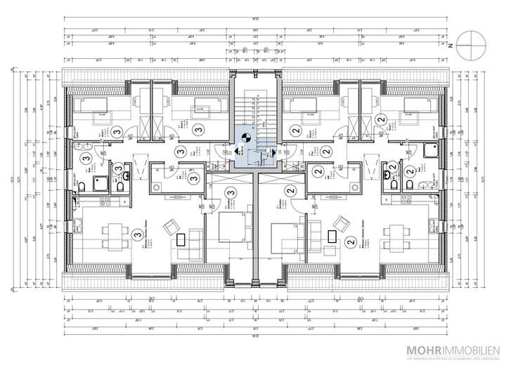 Hiermit bieten wir Ihnen eine Dachgeschosswohnung (WE3) im vorderen Gebäude an. Diese Einheit überzeugt mit einem durchdachten Grundriss auf ca. 89 m² Wohnfläche und bietet vier Zimmer. Der Hauseingang befindet sich auf der Rückseite des Gebäudes.