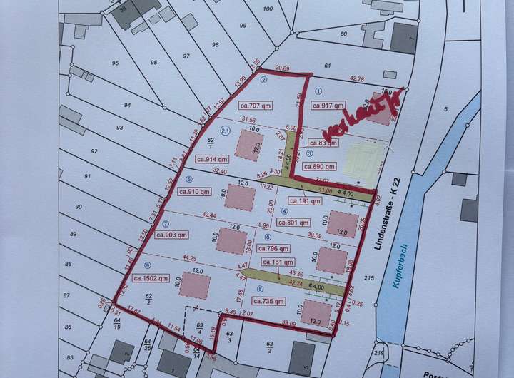 Das 7.723 m² große Baugrundstück mit Bauvorbescheid befindet sich in zentraler Ortslage von Büddenstedt/Offleben. Die Erschließung erfolgt über die Lindenstrasse. Das Grundstück ist in Einzelgrundstücke aufteilbar und noch unvermessen, die Planung sieht Einzelgrundstücke von 507 m² - 1.190 m² vor (Bauvorbescheid). Die Grundstücke haben eine top Lage mit Blick auf den Kupferbach und eine historische, sanierte Hofanlage.