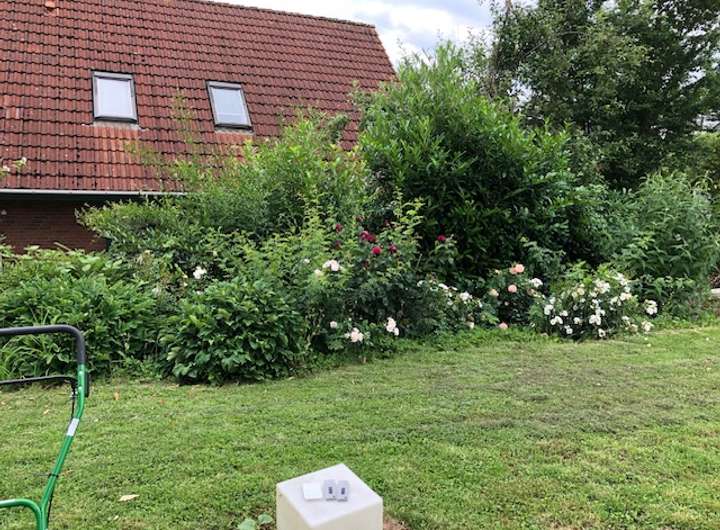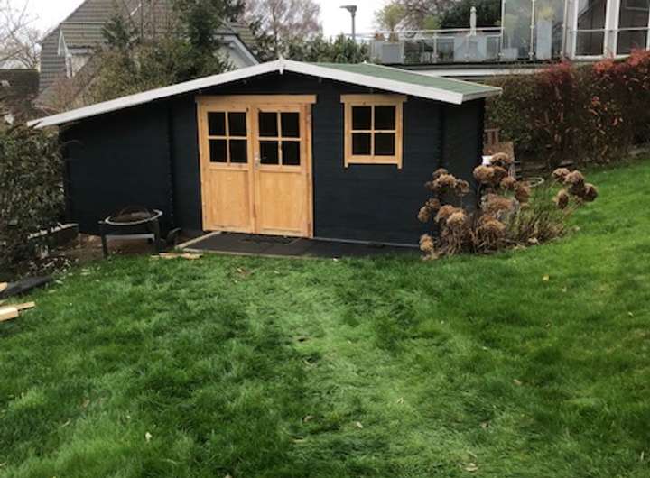 Im Garten wurde ein großes neues Gartenhaus mit Elektroverteilung verbaut.