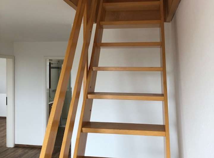 Über eine weitere Treppe erreicht man den ebenfalls wohnlich ausgebauten Spitzboden.