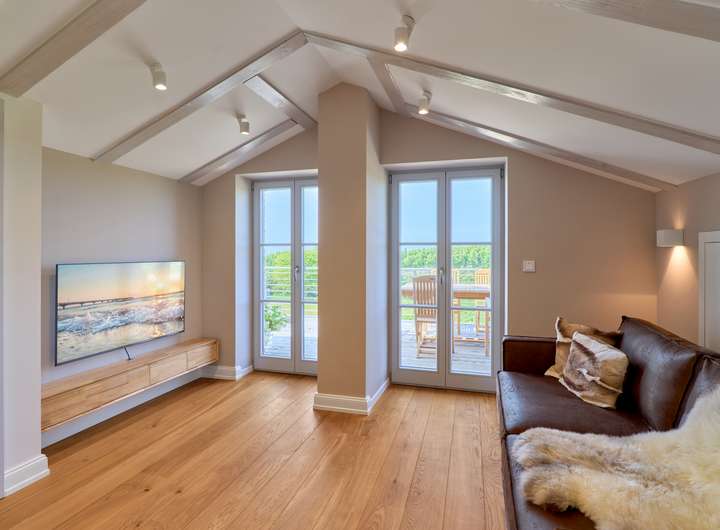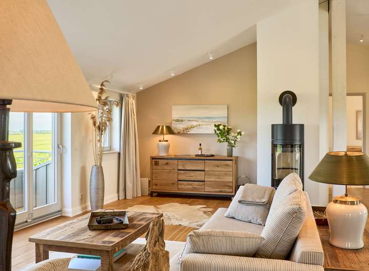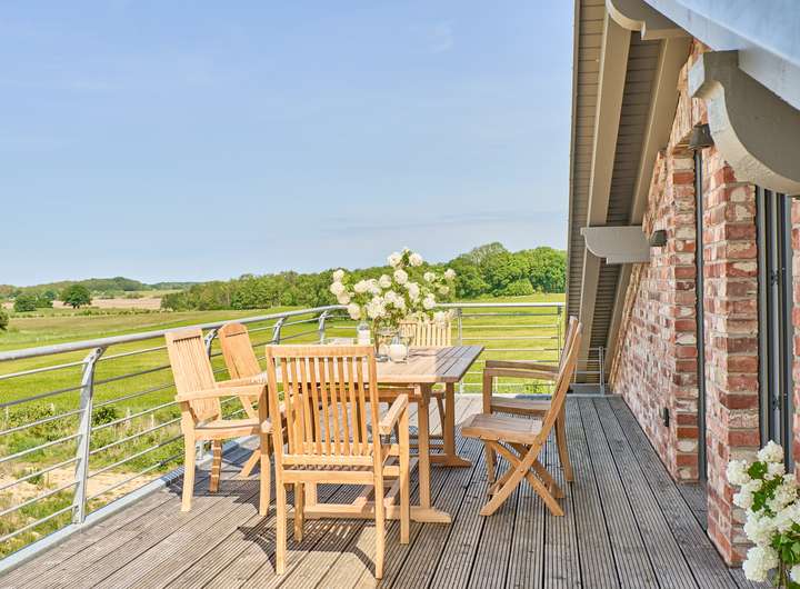 2 Dachterrassen, 4 Balkone: ein Penthouse mit Blick bis zur Ostsee. Stilvoll eingerichtet, einfach zum wohlfühlen und entspannen: Weinkühlschrank, Sauna, Kaminofen, Eichendielen - und ein beheizter Außenpool, wenn das Meer mal zu kalt ist.