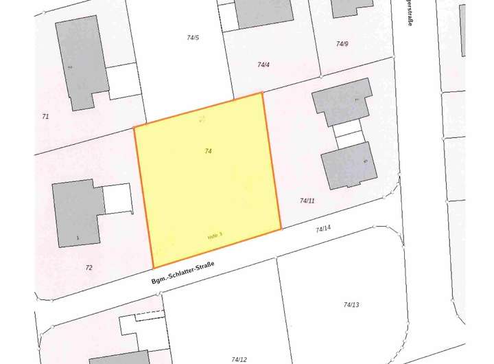 Die angrenzenden unbebauten Grundstücke Flur Nr. 74/12 zu 843 m² und Flur Nr. 74/13 zu 828 m² können eventuell auch erworben werden.