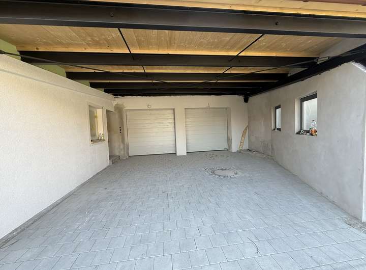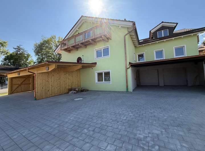 Da die Wohnung inzwischen fertiggestellt ist, kann die Erd- bzw. Obergeschosswohnung zeitnah bezogen werden. Der großzügige 20 m2-große Balkon wurde zur Hälfte in der Wohnfläche berücksichtigt. Für eine 30 m2(!) große Garage, welche großräumige Abstellflächen enthält, und einen neu errichteten Carport sind insgesamt 42.000 € zu bezahlen. Der Gesamtpreis beträgt somit insgesamt 514.000 €.