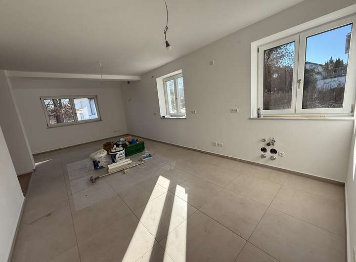 Es handelt sich um den Erstbezug einer großzügigen 5-Zimmer-Wohnung im Erdgeschoss eines Hanghauses mit einem großräumigen Südbalkon für viele schöne Stunden. Herzstück ist das 30 m2 große Wohnzimmer mit offener Küche. Wahlweise kann das Nebenzimmer mit offenem Zugang als Esszimmer, Büro oder weiteres Schlafzimmer genutzt und optional auch abgetrennt werden. Neben einem geräumigen Elternschlafzimmer stehen zudem zwei Kinderzimmer sowie ein separater Abstellraum/Speisezimmer zur Verfügung. Das neue exklusive Bad ist mit einer barrierefreien Dusche mit Wasserfallbrause sowie einem Waschmaschinenanschluss ausgestattet. Im geräumigen Flur können eine Garderobe und ausreichend Kleiderschränke positioniert werden.