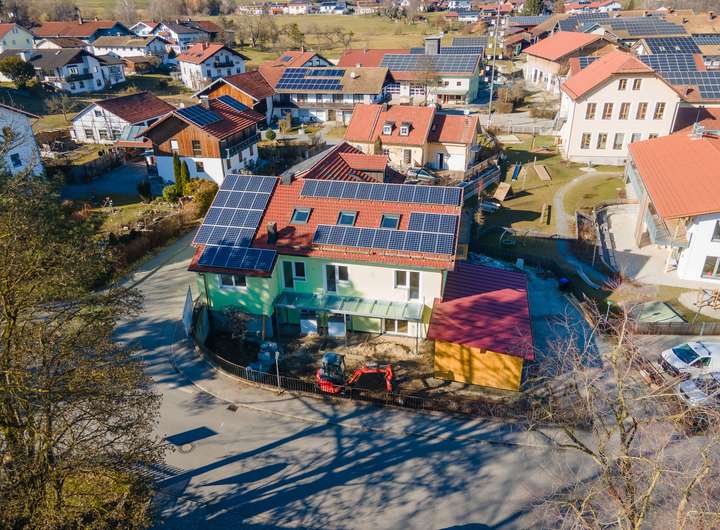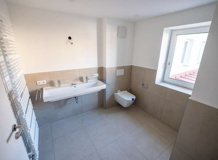 Die 2024/25 komplett modernisierte Wohnanlage (einschließlich aller Installationen) mit insgesamt fünf Eigentumswohnungen besticht mit einem energetisch höchsten Ansprüchen genügenden Gesamtkonzept. Dieses wurde konsequent in über 12 Monaten mit einem Energieberater umgesetzt: Neben einer Luftwärmepumpe wurden eine Außendämmung, ein dezentrales Lüftungssystem sowie neue 3-fachverglaste Fenster und eine angenehme Fußbodenheizung verwirklicht. Die pflegeleichten Vinylböden in Holzoptik sowie die neuen Bäder, Türen und Installationen runden das hochwertige gehobene Raumprogramm ab. Ebenso wurden die Außenanlagen einschließlich Hofpflasterung sowie die Garagen mit Rolltoren komplett erneuert und ausreichend Carports und Außenstellplätze geschaffen.