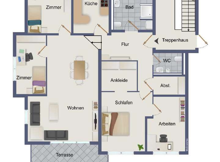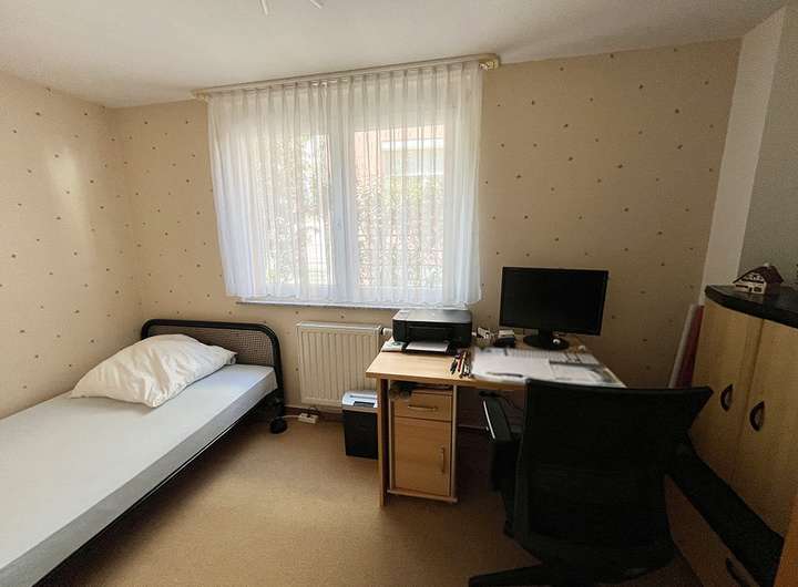 Für weitere Annehmlichkeiten sorgen ein begehbarer Kleiderschrank und ein Abstellraum. Freuen Sie sich auf ein Bad mit bodengleicher Dusche. Ein separates Gäste-WC ergänzt die Ausstattung.