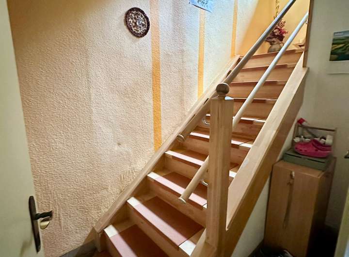 Die Wohnfläche von rund 137 m² verteilt sich auf Erd- und Obergeschoss und bietet ausreichend Platz für die ganze Familie. Auch eine Nutzung als Mehrgenerationenhaus wäre denkbar. In den vergangenen Jahren wurden regelmäßig Sanierungs- und Renovierungsmaßnahmen durchgeführt: So wurde 2005 ein alter Schuppen durch eine moderne Doppelgarage ersetzt, 2015 die Fassade frisch gestrichen und 2017 die Heizungsanlage erneuert. Ein besonderes Highlight ist der 2006 installierte Kaminofen im Wohnzimmer des Obergeschosses, der für wohlige Wärme und gemütliche Stunden sorgt.