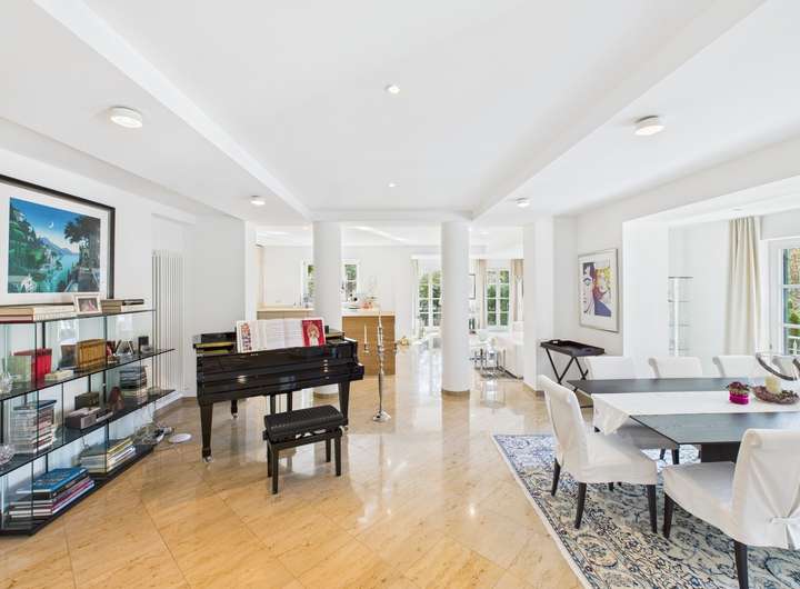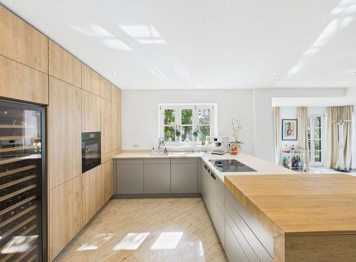 Dieses bezaubernde Försterhaus, erbaut im Jahr ca. 1920 und im Jahr 2003 erweitert und umfassend saniert, bietet die perfekte Kombination aus historischem Charme und modernem Komfort. In einer der begehrtesten Lagen Wiesbadens gelegen, nur wenige Gehminuten vom Kurpark und dem Wald entfernt, bietet es eine friedliche Oase in der Natur, während Schulen, Supermärkte und öffentliche Verkehrsmittel leicht erreichbar sind. Auf drei Ebenen verteilt, bieten die ca. 320 m² Wohn-& Nutzfläche viel Platz für eine größere Familie. Das durchdachte Layout schafft die ideale Balance zwischen Gemeinschaft und Privatsphäre, mit mehreren Räumen für Entspannung und ruhige Rückzugsorte. Auch wenn das Haus über mehrere Treppen verfügt, sorgt das intelligente Design dafür, dass jede Ebene komfortabel und praktisch genutzt werden kann. Das großzügige Grundstück bietet mit ca. 1.193 m² viel Platz für Aktivitäten im Freien und umfasst drei Terrassen: Eine gemütliche Terrasse neben der Küche, ist perfekt für Mahlzeiten im Freien. Eine komfortable Wintergarten-Terrasse, ist ideal für den ganzjährigen Genuss der Natur. Die Sonnenterrasse mit einer großen Rasenfläche, ist perfekt zum Spielen oder Entspannen. Hier erwartet Sie ein helles Haus - Schöne, große Fenster auf allen Ebenen lassen viel Tageslicht herein und bieten malerische Ausblicke auf die grüne Umgebung, wodurch ein helles und einladendes Ambiente entsteht. Die geschickte Aufteilung des Erdgeschosses begeistert - Eine neu renovierte Küche und ein offener Wohnbereich machen diese Etage ideal, um Familie und Freunde zu empfangen. Ein stilvolles Gäste-WC und eine luxuriöse Sauna sorgen für modernen Komfort. Das Obergeschoss ist die perfekte Elternetage. Ein geräumiges Hauptschlafzimmer mit einem Marmorbad (inklusive einer luxuriösen Badewanne) sowie ein gemütliches Lese-/TV-Zimmer mit Kamin und ein zusätzliches Zimmer, das als Büro oder Gästezimmer genutzt werden kann, bieten Ihnen alle Optionen. Das Dachgeschoss ist ideal für Kinder, mit bis zu zwei Schlafzimmern, einem Spielzimmer und einem modernen Duschbad. Eine zweite, voll ausgestattete Küche auf dieser Etage ist perfekt für ein Au-pair, Gäste oder Familienmitglieder, sodass jeder bequem und unabhängig leben kann. Die oberste Ebene beherbergt den Hauswirtschaftsraum mit Platz für Waschmaschine und Trockner. Außerdem gibt es einen geräumigen, trockenen Speicher mit großen, praktischen Schränken für zusätzlichen Stauraum. Sicherheit & Privatsphäre kommen hier nicht zu kurz, denn das Haus ist mit einem modernen Alarmsystem ausgestattet und liegt in einer ruhigen, abgeschiedenen Gegend, umgeben von Natur – ideal für Ruhe und Erholung. Abgerundet wird das Platzangebot mit einer großen Doppelgarage für Ihre Fahrzeuge. Dieses Haus befindet sich in einer der besten Lagen Wiesbadens, nur wenige Schritte vom Kurpark und den umliegenden Wäldern entfernt – ideal für Naturliebhaber. Trotz der ruhigen Umgebung sind die Annehmlichkeiten der Stadt fußläufig erreichbar, was die perfekte Balance zwischen urbaner Bequemlichkeit und naturnaher Idylle bietet