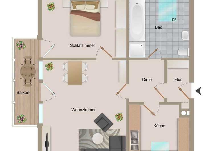 Sofort verfügbare 2 Zimmer-Wohnung mit Balkon und Außenstellplatz