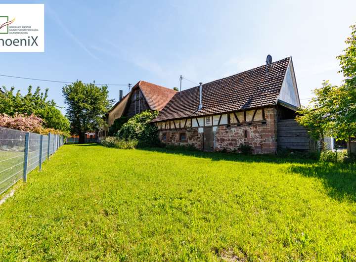 Zudem gibt es eine große Scheune in unmittelbarer Nähe zum Wohnhaus. Diese Scheune kann dem Hobby, dem Beruf oder zum weiteren Ausbau dienen. Das Gebälk ist augenscheinlich in einem sehr guten Zustand. Ein angrenzender Garten möchte ebenfalls erweckt werden. Der Hof wird von einem stattlichen Baum beschattet und repräsentiert die einst herrschaftliche Anlage.