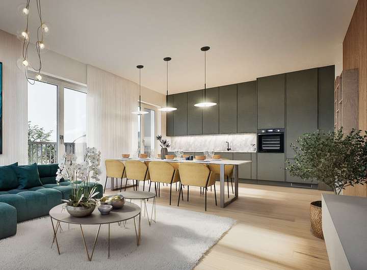 Die Forest Homes bieten moderne Wohnqualität mit Fußbodenheizung, hochwertigen Eichenparkettböden und großzügigen Balkonen oder Terrassen. Die Badezimmer verfügen über hochwertige Markensanitärobjekte, teilweise mit En-suite-Bädern. Das Gebäude ist mit einem Aufzug und eigenen Kellerabteilen ausgestattet. Energieeffiziente Erdwärme-Heizung und eine zentrale Lüftungsanlage mit Wärmerückgewinnung sorgen für nachhaltiges Wohnen. Die modernen Wohnungen erfüllen den KfW-40-Standard für nachhaltiges und energieeffizientes Wohnen.