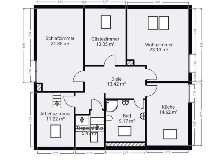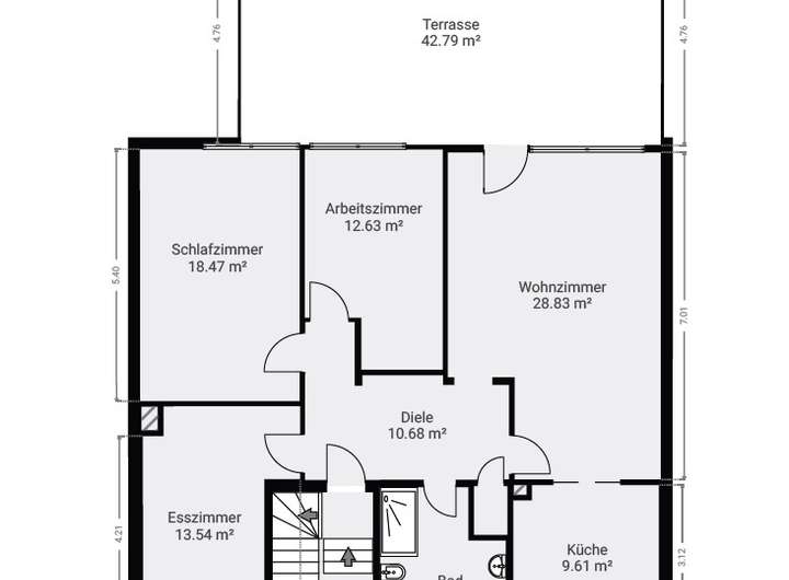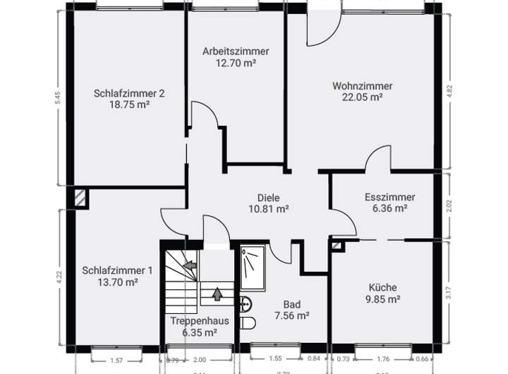 Die Wohnung im 1. Obergeschoss ist aktuell für 1.530 € kalt monatlich an ein Steuerbüro vermietet, was eine sofortige Einnahmequelle für Kapitalanleger darstellt – und gleichzeitig flexible Nutzungsmöglichkeiten offenlässt.