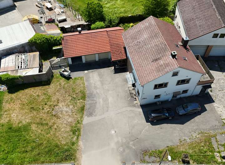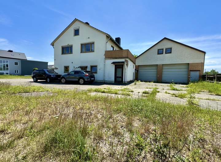 • Bestand: ein großes Wohnhaus, eine große LKW-Doppelgarage mit Dachboden und eine PKW-Dreiergarage