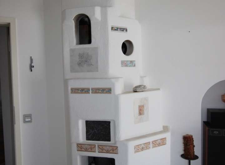 -Warmluft-Kollektorheizung in der Küche im EG und Bad im OG