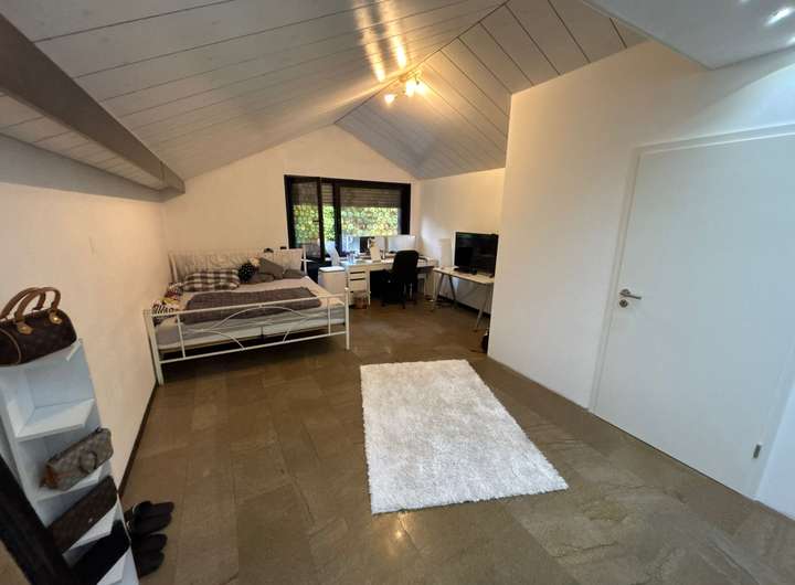 *Festpreis* Diese großzügige Villa aus dem Jahr 1978 überzeugt mit einem außergewöhnlichen Raumangebot auf ca. 218 qm Wohnfläche, verteilt auf drei Etagen. Ob große Familie, anspruchsvolles Wohnen oder Wohnen und Arbeiten unter einem Dach – dieses Objekt bietet vielfältige Nutzungsmöglichkeiten in einem gepflegten, teils modernisierten Zustand. Im Erdgeschoss betreten Sie das Haus über einen Windfang, der in einen offenen Dielenbereich mit Designer-Geländer und hohen Decken übergeht. Herzstück ist das lichtdurchflutete Wohnzimmer mit großflächiger Fensterfront, Türen und einem gemütlichen Kamin, der eine warme Atmosphäre schafft. Die angrenzende Einbauküche ist funktional und offen gestaltet – ideal für gesellige Abende mit Familie oder Gästen. Ein stilvoll ausgestattetes Gäste-WC vervollständigt das Raumangebot auf dieser Ebene. Im Obergeschoss erwartet Sie ein großzügiges Master-Schlafzimmer mit Balkon, ein geräumiges Hauptbadezimmer, sowie drei weitere Schlafräume, jeweils mit eigenem En-Suite-Bad. Ein weiteres Zimmer verfügt ebenfalls über einen Balkon. Zusätzliche Stauräume unter den Dachschrägen, sowie der große Dachboden sorgen für praktischen Platz. Das Untergeschoss der Villa bietet vielfältige Nutzungs- und Erholungsmöglichkeiten: Hier finden Sie insgesamt sieben Räume, darunter ein großzügiger Fitnessbereich, ein stilvoller Hobby-/Zigarrenraum im Holzstil mit Kamin, mehrere Lagerräume, ein Heizungsraum, ein separates WC sowie eine Sauna für entspannte Stunden. Darüber hinaus verfügt das Untergeschoss über einen eigenen Panikraum, der zusätzliche Sicherheit bietet. Das absolute Highlight dieser Etage ist das große Hallenbad mit eigener Dusche und direktem Ausblick in den Gartenbereich – ein echtes Alleinstellungsmerkmal dieser Immobilie. Alle Räume bis auf einer im Keller sind mit einer Fußbodenheizung versehen. Für zusätzliche Sicherheit sorgt ein modernes Kamerasystem, das auf dem gesamten Grundstück installiert ist. Der gepflegte Außenbereich, mit überdachter Sitzecke bieten Rückzugsmöglichkeiten und Erholung. Brunnenwasser mit 6 Anschlüssen im Garten, eine Garage mit Handysteuerung sowie ein zusätzlicher Stellplatz vor dem Haus sorgen für ausreichend Parkmöglichkeiten. Ein separater Außen-Kellerraum bietet Platz für Ihre Gartengeräte. Die Einliegerwohnung mit 2 Zimmern, eigenem Kellerabteil und abgetrenntem Gartenbereich, sowie einem Außenstellplatz ist aktuell für 700€ Kalt vermietet.