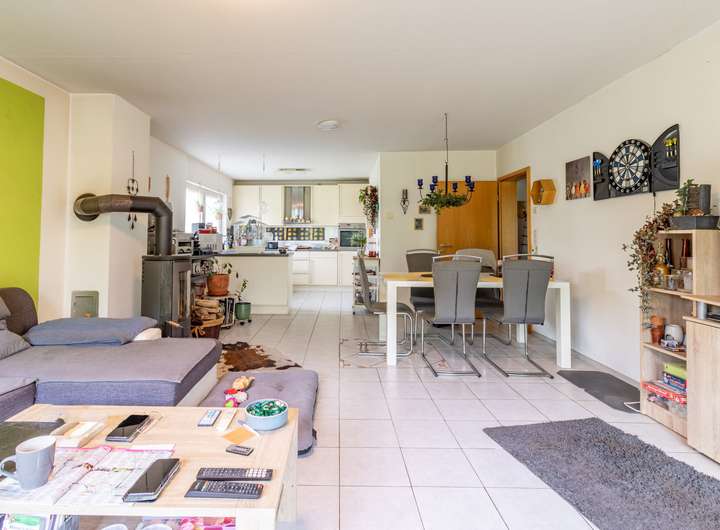 Das Einfamilienhaus wird mit einer Erdwärmepumpe beheizt und der Bodenbelag ist mit Fliesen- und Laminatboden ausgelegt. Für die Fenster wurden Kunststoffrahmen und Doppelverglasung verwendet.