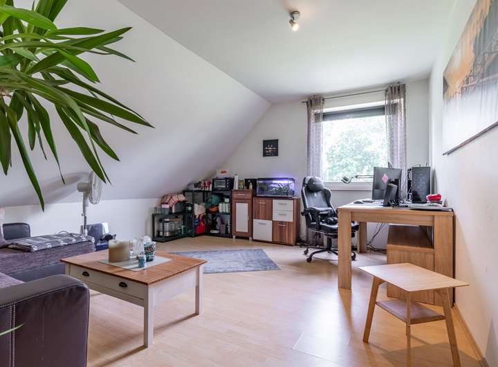 Der vorhandene Spitzboden bietet zusätzlichen Platz für extra Stauraum.