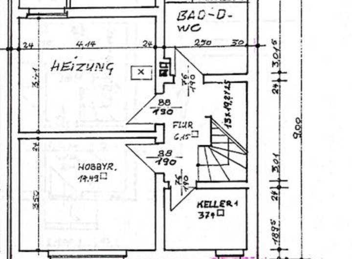 Untergeschoss (keine Wohnfläche daher nur zu 50% in der angegebenen Fläche berücksichtigt).
