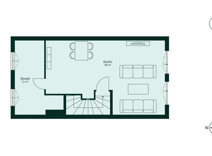 Im Dachgeschoss wartet ein geräumiges Studio darauf, nach Ihren Bedürfnissen eingerichtet zu werden. Der anliegende Abstellraum hilft Ihnen dabei, die Ordnung in Ihrem Zuhause zu wahren. Zu guter Letzt steht Ihnen noch der Keller zur Verfügung, der mit seiner großzügigen Fläche einiges an Nutzungspotenzial mitbringt.