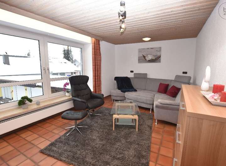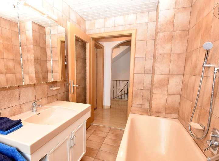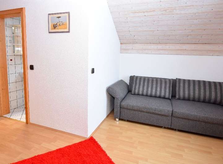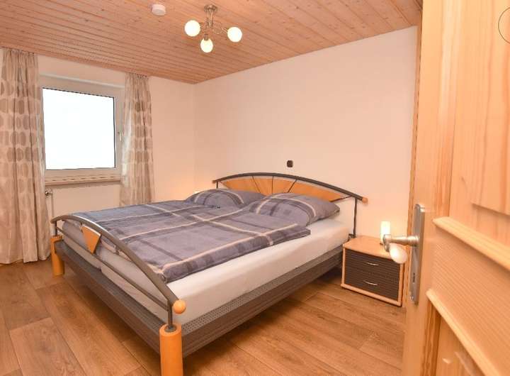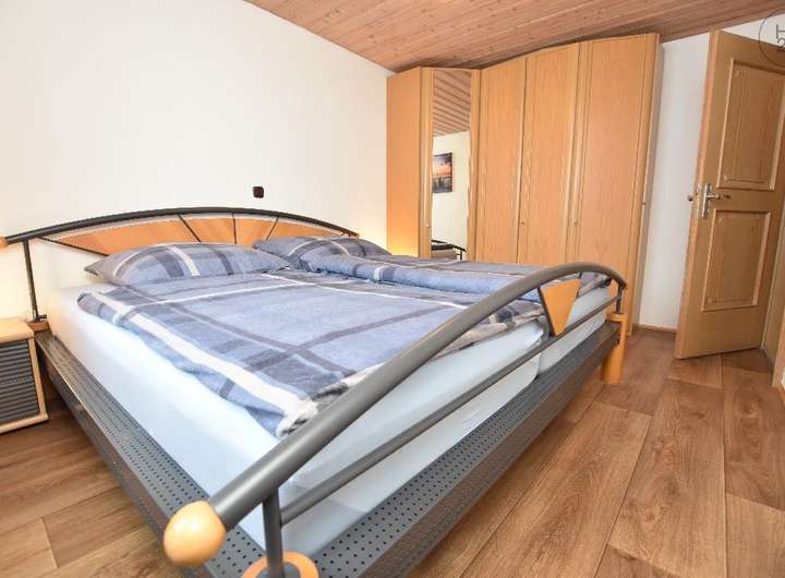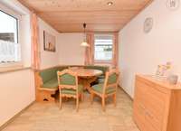 Im EG befindet sich die Küche mit Einbauküche und Essecke. Esszimmer mit großem Esstisch mit Eckbank und Stühlen sowie TV- Anschluss. Gäste-WC und Abstellkammer. Im 1. OG großes helles Wohnzimmer mit Ecksofa, Sessel und TV. Schlafzimmer mit Doppelbett und Kleiderschrank. Tageslichtbad mit Badewanne, Waschbecken mit Spiegelschrank, WC und Waschmaschine. Des Weiteren befindet sich im Dachgeschoss ein Zimmer mit separatem Tageslicht-Duschbad und WC. Das Zimmer ist mit einem Schlafsofa, Einbauschränken sowie einem Schreibtisch ausgestattet.