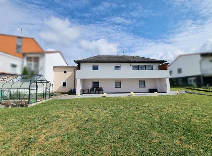 Nutzen Sie diese Gelegenheit! Dieses Haus mit zwei separaten Wohneinheiten ist perfekt für Sie! Die Erdgeschosswohnung bietet Ihnen auf 125m² Wohnfläche einen großzügigen Wohn-Essbereich mit offener Küche und Zugang zum großzügigen Balkon mit der Sicht in den schön angelegten Garten. Die zwei Kinderzimmer, Schlafzimmer und das Badezimmer mit Badewanne und Dusche ist von angenehmer Größe. Ein kleiner Kellerraum und der Dachboden kann als Lagerfläche genutzt werden. Die andere 85m² 3-Zimmer Wohnung - welche über die Außentreppe zu erreichen ist - hat ebenso Räume von ausreichender Größe und Helligkeit. Der Heizungsraum ist hierüber zu erreichen.
