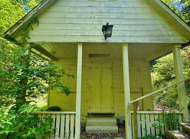 Das kleine Häuschen auf dem Grundstück ist mit fließendem Wasser und Strom ausgestattet und lässt sich dank des Kaminofens ganzjährig beheizen. So ist es auch möglich, hier ein gemütliches Wochenende zu verbringen und den Abend in aller Ruhe ausklingen zu lassen, um am nächsten Morgen das Erwachen der Natur mit Vogelgezwitscher zu genießen.