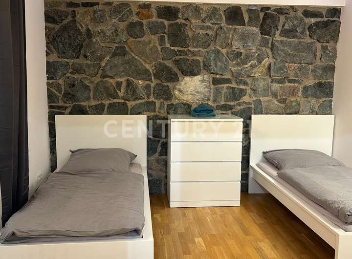 Hervorzuheben ist dabei die großzügige ca. 200 m² große Maisonettewohnung mit einer Terrasse, zwei Bädern und einem Kamin als zusätzliche Heizeinheit für den großen offenen Wohn-/ Essbereich im Erdgeschoss, welcher zusätzlich mit einer hohen Deckenhöhe und mit viel Licht dank großer Fensterflächen überzeugt. Ein weiteres Highlight ist die als ehemaliges Schwimmbad umfunktionierte Souterrainwohnung mit ca. 112 m² Wohnfläche, ebenfalls zwei Bädern und einem offenem Wohn-/ Essbereich, der mit einer guten Belichtung durch eine Tiefhof-Terrasse und indirekter Beleuchtung für das perfekte Lounge Gefühl sorgt.