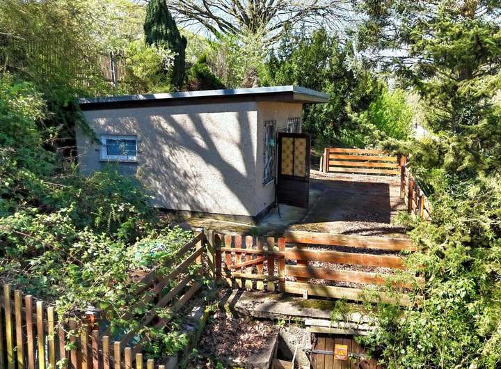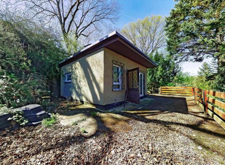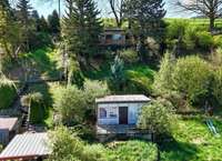 Im unteren Bereich ist ebenfalls ein Bungalow gelegen, diesen gilt es neu aufzubauen, da das Dach nicht mehr dicht ist. Im übrigen fühlen sich hier auch Kleintiere super Wohl. Das komplette Grundstück ist eingezäunt.