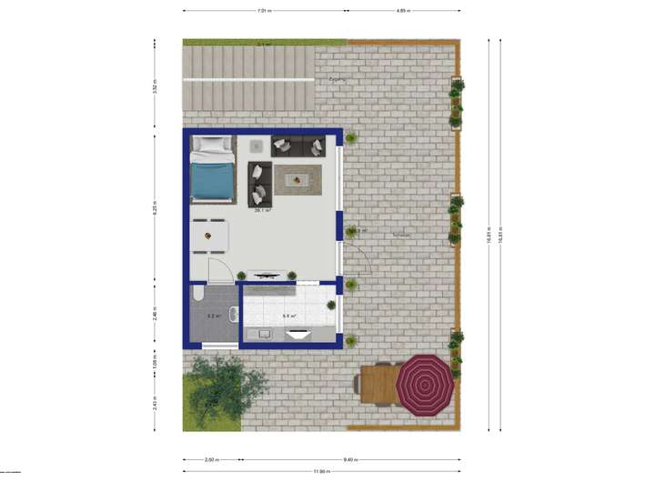 Üppige Sträucher, gewachsene Büsche und eine kompakte Rasenfläche verleihen dem Grundstück seinen natürlichen Charme – und bieten gleichzeitig viel Raum für individuelle Gartengestaltung und kreative Ideen. Hier darf der grüne Daumen wirken.