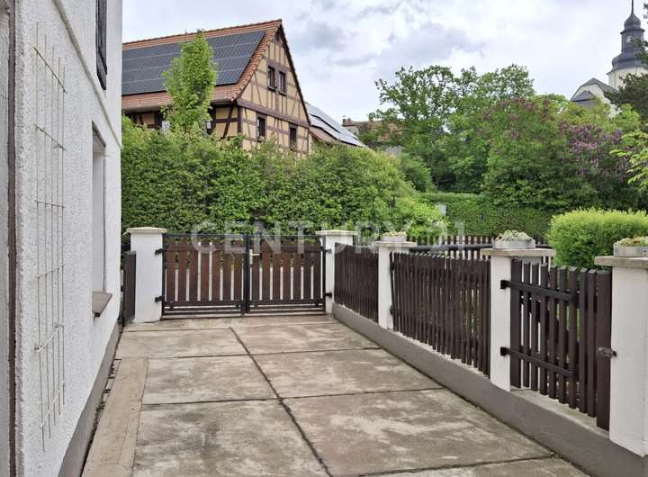 Die Immobilie befindet sich im Ortskern von Großenstein, einer ruhigen Gemeinde im thüringischen Landkreis Greiz. Die Lage bietet ländliche Idylle mit guter Anbindung: Gera ist nur ca. 5 km entfernt, auch die A4 ist schnell erreichbar. Großenstein verfügt über eine Kindertagesstätte, medizinische Versorgung und ein aktives Vereinsleben. Einkaufsmöglichkeiten, Schulen und weitere Infrastruktur finden sich im nahegelegenen Gera. Kulturelle Angebote wie die Pfarrkirche St. Bartholomäus und das Heimatmuseum prägen den Ort.